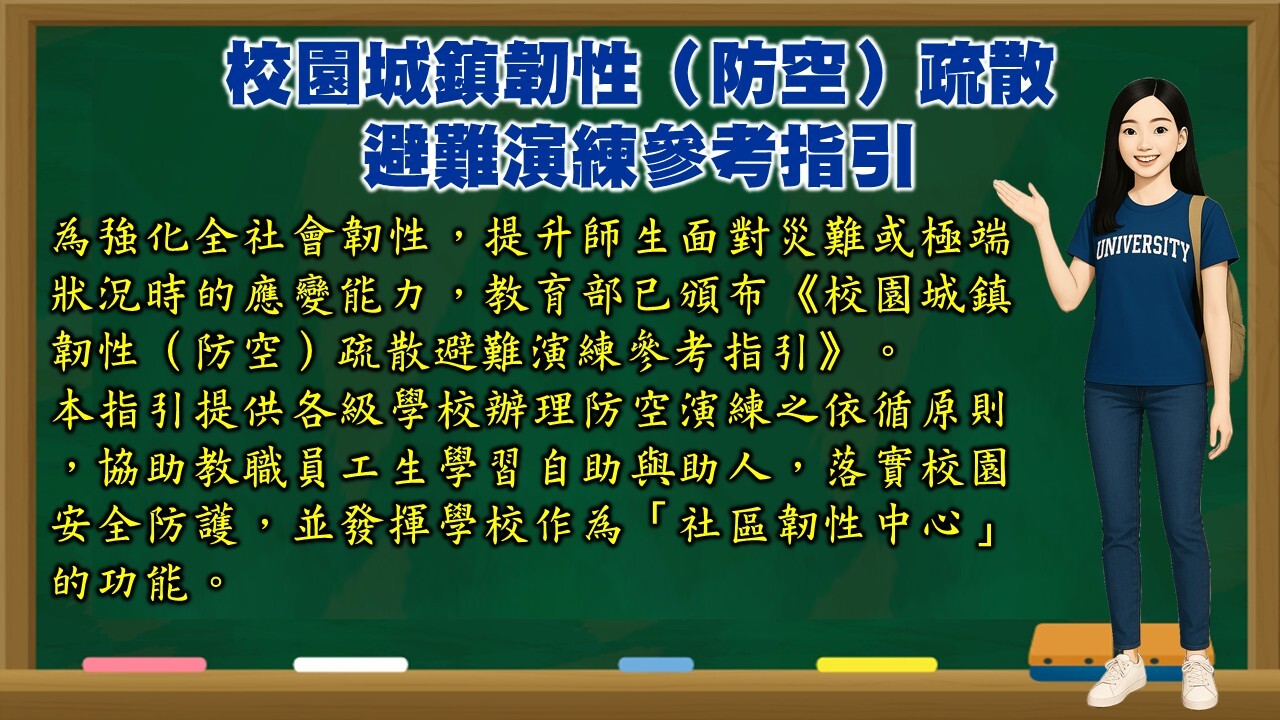 🛡️【學生事務處公告】《校園城鎮韌性(防空)疏散避難演練參考指引》🛡️