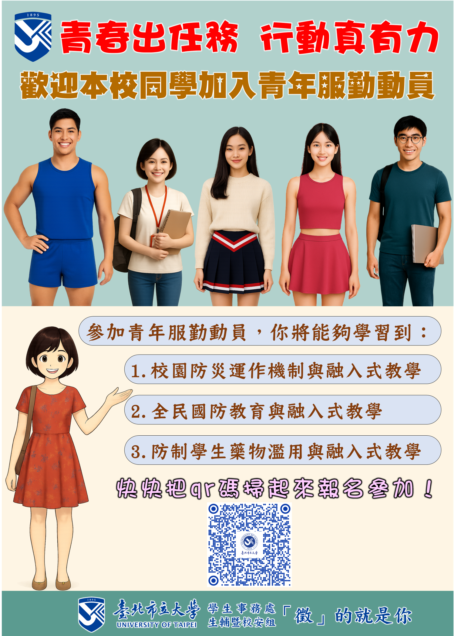 【學生事務處公告】🌟 青春出任務,行動真有力! 歡迎報名參加本校青年服勤動員🌟